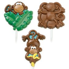 WILTON-Lollipop Mold: Monkey. With this lollipop mold it's a breeze to create great tasting treats for any occasion! This mold is constructed of a flexible and reusable plastic featuring 3 cavities in 3 designs. Just melt your Wilton Candy Melts (not included); mold; cool and serve! Measurements: 10-1/2x5-1/2in. Imported.
