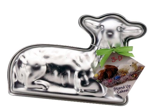 - Cast-aluminum 3-D cake mold in the shape of a spring lamb